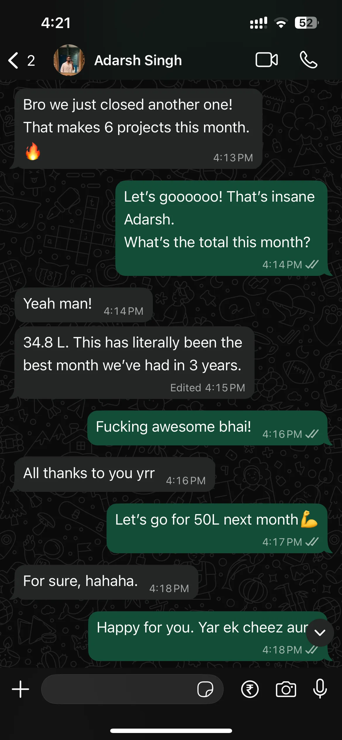 Just last week, I closed a ₹7.2L home renovation. I finally feel like a real business owner again.”